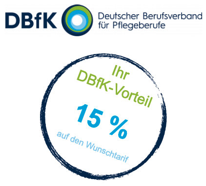 Sichern Sie sich Ihren DBfK-Vorteil: 15 % Rabatt auf Ihren Wunschtarif! Geben Sie dazu in der Registrierung einfach den Gutscheincode DBfK15EXKLUSIV ein.